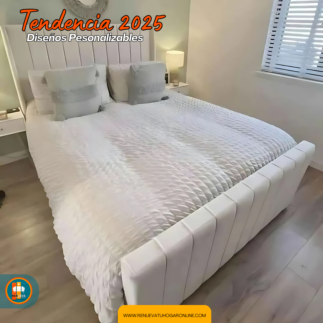 Incluye colchón semi ortopédico resortado de 25 cm de grosor, base cama y espaldar (cabecero). Puedes elegir entre más de 600 diseños y personalizar el color según tu gusto.
