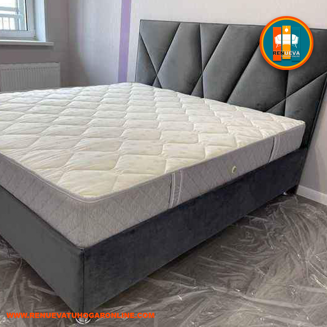 Incluye colchón semi ortopédico resortado de 25 cm de grosor, base cama y espaldar (cabecero). Puedes elegir entre más de 600 diseños y personalizar el color según tu gusto.